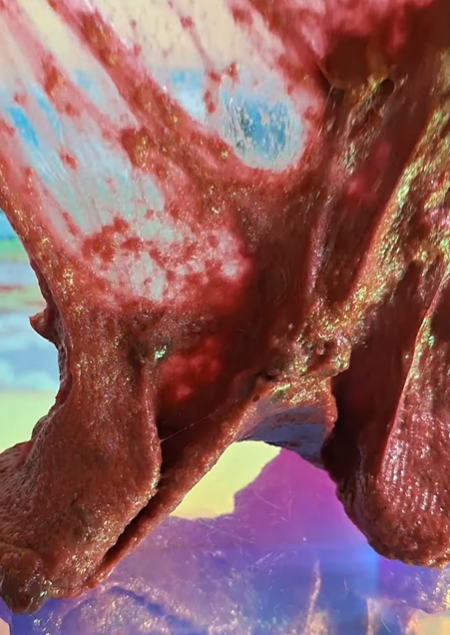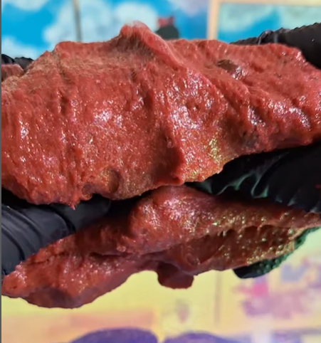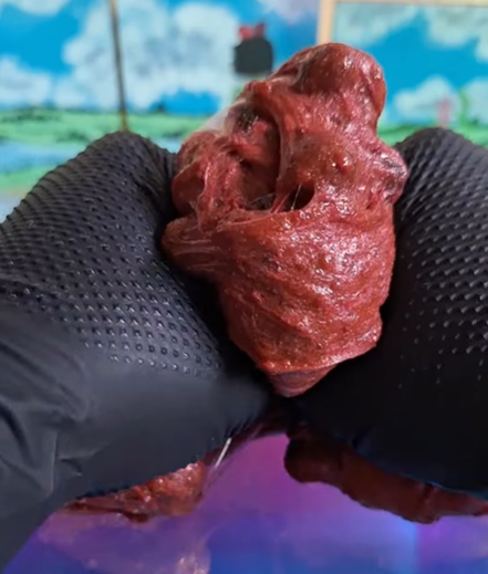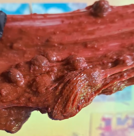 This slime evokes the holler in autumn, with its deep red hue reminding me of red-painted barns and big leaf piles. The leca pebbles feel wonderful in the pulpy jelly base, which has a gummy-resistant pull and is textured with pulpy “snow”. It comes with faux “grass & dirt”, faux plants, vegetable harvest fimos, and a tiny cottage home for you to build a realistic landscape with. The scent blend is food-y but not overwhelmingly so, nor does it read as “candle-like” to me. It’s not cloyingly sweet; more rustic kitchen. I blended the cornbread notes from scratch so there is a faintly savory edge that pairs well with the sweeter molasses and apple notes. The apple jam is not spiced or soapy but rather one that feels like it’s been pulled from a chilled root cellar. Notes of a brisk fall morning tie it all together.