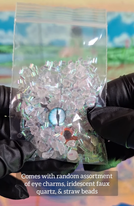 Note: Each slime comes with an add-in baggie containing iridescent fuax quartz, iridescent bingsu / straw beads, and an assortment of eye charms.